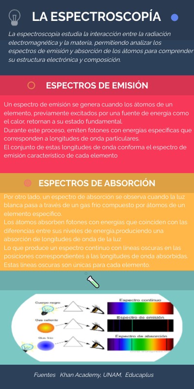 La espectroscopía estudia la interacción entre la radiación electromagnética y la materia, permitiendo analizar los espectros de emisión y absorción de los átomos para comprender su estructura electrónica y composición.