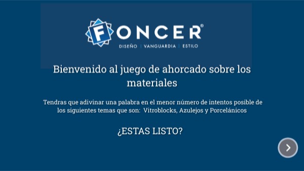 Tendras que adivinar una palabra en el menor número de intentos posible de los siguientes temas que son: Vitroblocks, Azulejos y Porcelánicos
