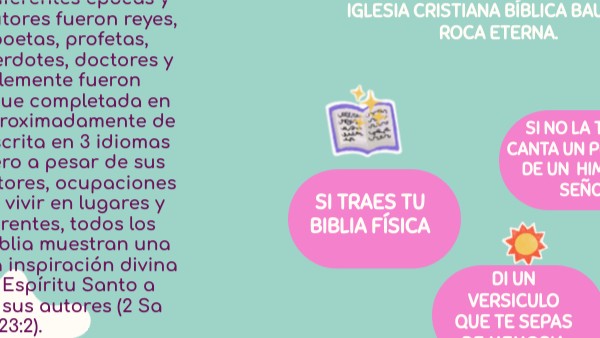 La Biblia fue escrita por 40 personas escogidas y preparadas por Dios en diferentes épocas y lugares.Sus autores fueron reyes, príncipes, poetas, profetas, pastores, sacerdotes, doctores y otros simplemente fueron pescadores. Fue completada en un periodo aproximadamente de 1600 años y escrita en 3 idiomas diferentes. Pero a pesar de sus distintos escritores, ocupaciones e idiomas, de vivir en lugares y tiempos diferentes, todos los libros de la Biblia muestran una unidad y fue la inspiración divina dada por El Espíritu Santo a cada uno de sus autores (2 Sa 23:2).