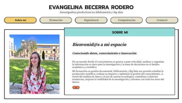 En un mundo donde el conocimiento se genera a gran velocidad, analizar y organizar la información es clave para la investigación y la toma de decisiones en el ámbito académico y científico. Mi formación en gestión documental, bibliometría y Big Data me permite estudiar la producción científica, evaluar su impacto y optimizar la gestión del conocimiento. A través del análisis de datos y el uso de nuevas tecnologías, contribuyo a detectar tendencias, mejorar la visibilidad de la investigación y afrontar con éxito los retos del futuro.
