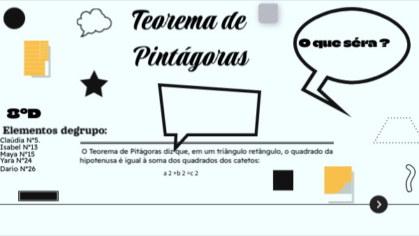 O Teorema de Pitágoras diz que, em um triângulo retângulo, o quadrado da hipotenusa é igual à soma dos quadrados dos catetos: