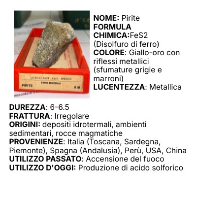 • Oggi: viene usata nell’industria chimica per produrre acido solforico e anche come minerale da collezione.