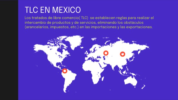 Los tratados de libre comercio( TLC) se establecen reglas para realizar el intercambio de productos y de servicios, eliminando los obstáculos (arancelarios, impuestos, etc.) en las importaciones y las exportaciones.