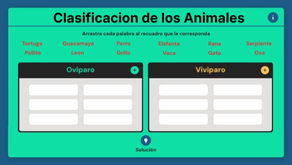 En este juego didacto los alumnos podran identificar los animales oviparos y viviparos utilizando los conocimientos que tienen.