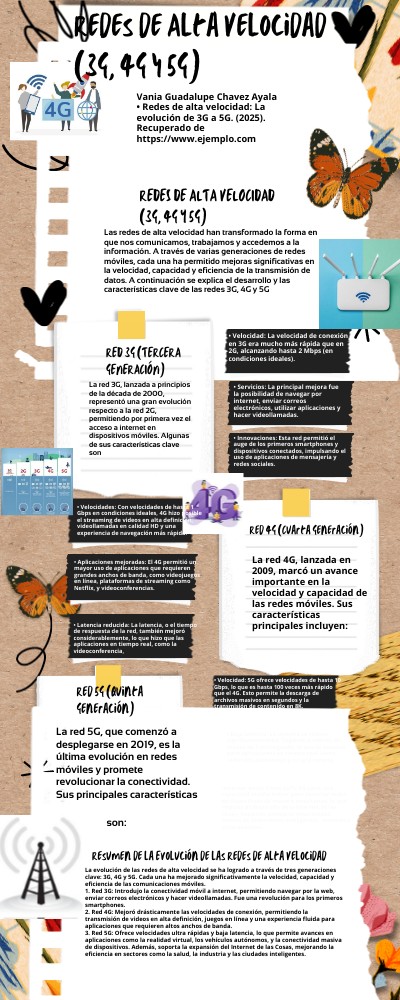 Vania Guadalupe Chavez Ayala• Redes de alta velocidad: Laevolución de 3G a 5G. (2025).Recuperado dehttps://www.ejemplo.com