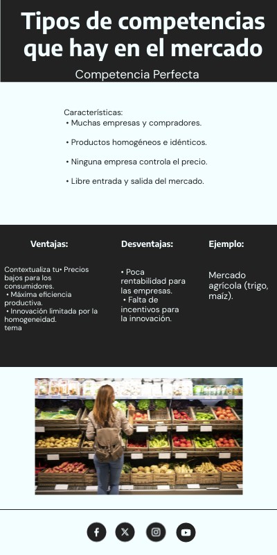 Contextualiza tu• Precios bajos para los consumidores. • Máxima eficiencia productiva. • Innovación limitada por la homogeneidad. tema