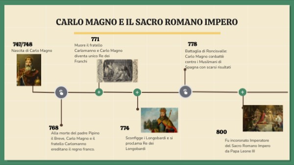 Alla morte del padre Pipino il Breve, Carlo Magno e il fratello Carlomanno ereditano il regno franco.