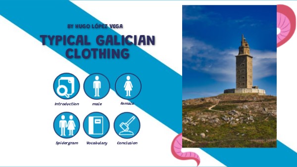 The traditional Galician costume shows Galicia's culture. Women wear long skirts, white blouses, shawls, and headscarves. Men wear fitted pants, white shirts, vests, and sometimes hats. These outfits are used in festivals and represent Galician heritage.