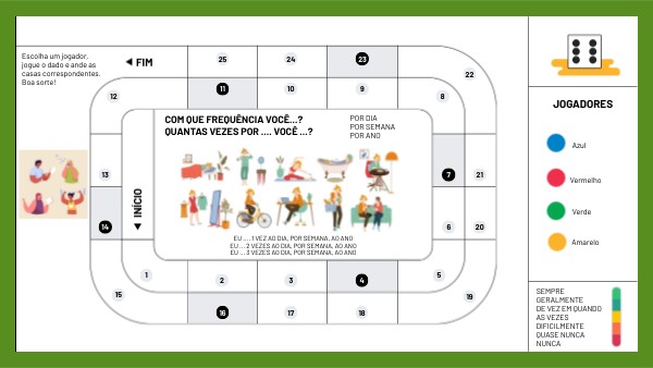 Escolha um jogador, jogue o dado e ande as casas correspondentes. Boa sorte!