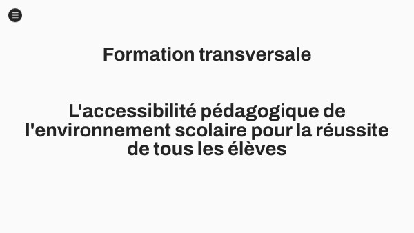 Formation transversale L'accessibilité pédagogique de l'environnement scolaire pour la réussite de tous les élèves