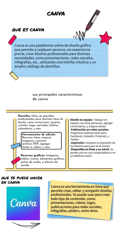 Canva es una herramienta en línea que permite crear, editar y compartir diseños profesionales. Se puede usar para crear todo tipo de contenido, como presentaciones, videos, logos, publicaciones para redes sociales, infografías, pósters, entre otros.