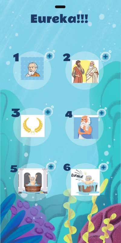 Entonces Arquímedes se dio cuenta de que había resuelto el misterio. Y olvidando por completo que estaba desnudo, salió a la calle gritando "¡eureka, eureka!", que en griego antiguo significa "lo he encontrado".