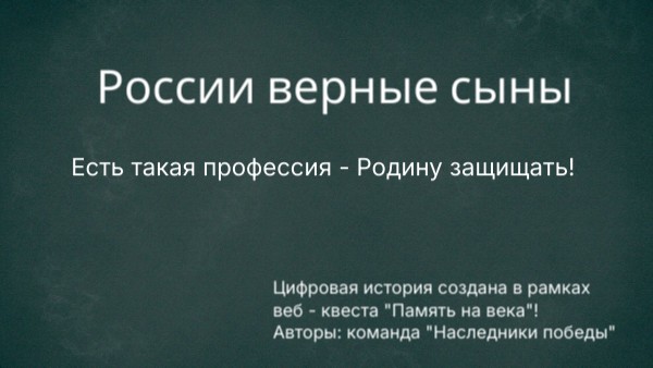 Цифровая история создана в рамках веб - квеста "Память на века"! Авторы: команда "Наследники Победы"