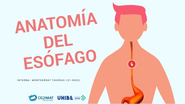El esófago es un tubo muscular, de alrededor de unos 25 cm de largo y 2 cm de diámetro por término medio, que transporta el alimento desde la faringe hasta el estómago. Se localiza entre la tráquea y la columna vertebral, a la izquierda de la vena cava. Tres porciones: - Cervical - Torácica - Abdominal