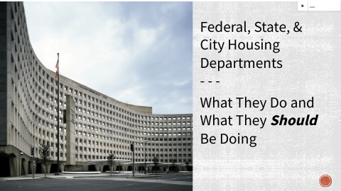 Federal, State, & City Housing Departments- - - What They Do and What They Should Be Doing