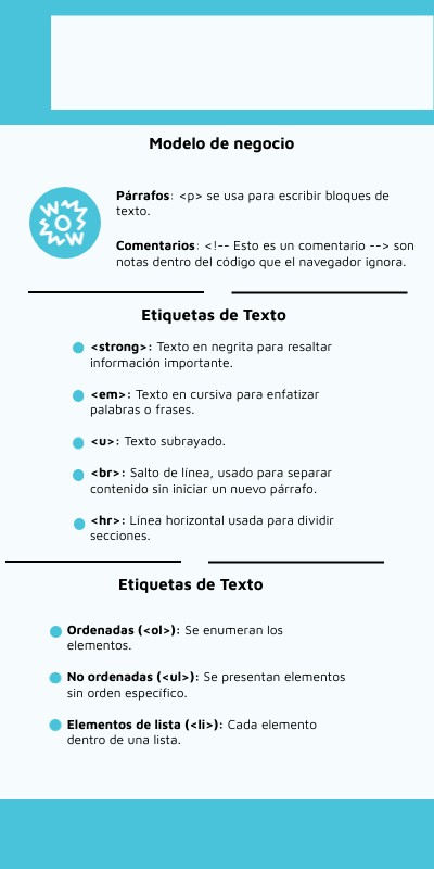 <strong>: Texto en negrita para resaltar información importante. <em>: Texto en cursiva para enfatizar palabras o frases. <u>: Texto subrayado. <br>: Salto de línea, usado para separar contenido sin iniciar un nuevo párrafo. <hr>: Línea horizontal usada para dividir secciones.