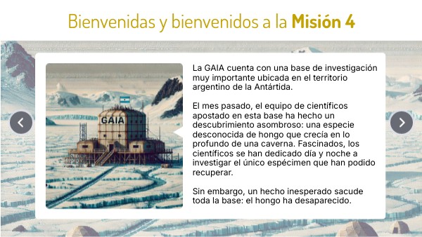 La GAIA cuenta con una base de investigación muy importante ubicada en el territorio argentino de la Antártida. El mes pasado, el equipo de científicos apostado en esta base ha hecho un descubrimiento asombroso: una especie desconocida de hongo que crecía en lo profundo de una caverna. Fascinados, los científicos se han dedicado día y noche a investigar el único espécimen que han podido recuperar. Sin embargo, un hecho inesperado sacude toda la base: el hongo ha desaparecido.