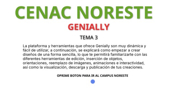 La plataforma y herramientas que ofrece Genially son muy dinámica y fácil de utilizar, a continuación, se explicará como empezar a crear diseños de una forma sencilla, lo que te permitirá familiarizarte con las diferentes herramientas de edición, inserción de objetos, orientaciones, reemplazo de imágenes, animaciones e interactividad, así como la visualización, descarga y publicación de tus creaciones.