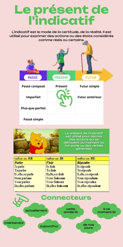 L'indicatif est le mode de la certitude, de la réalité. Il est utilisé pour exprimer des actions ou des états considérés comme réels ou certains.