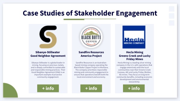 Hecla Mining is a leading silver mining company in the U.S. with operations that engage extensively with the local communities near their Greens Creek (Juneau, AK) and Lucky Friday (Mullan, ID) mines. They focus on long-term community benefits, including economic development and environmental stewardship.