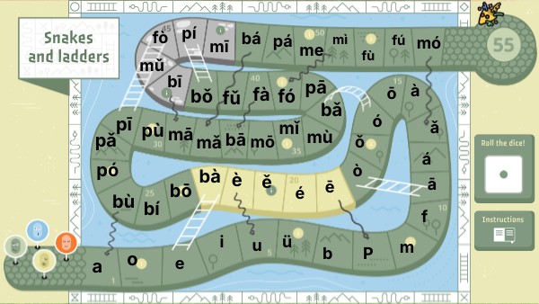 Players start with a token - which represents each of them - in the initial square and take turns rolling the die. The tokens move according to the numbering on the board, in ascending order. If, at the end of a move, a player lands on a square where a ladder begins, they move up it to the square where it ends. If, on the other hand, they land on a square where a snake's tail begins, they move down it to the square where its head ends. If a player rolls a 6, they can move twice in a single turn. If a player rolls three consecutive 6's, they must return to the initial square and cannot move their token until they roll a 6 again. The player who reaches the final square is the winner. There is a variation where, if a player is six or fewer squares away from the end, they must roll precisely the number needed to reach it. If the number rolled exceeds the number of remaining squares, the player cannot move.