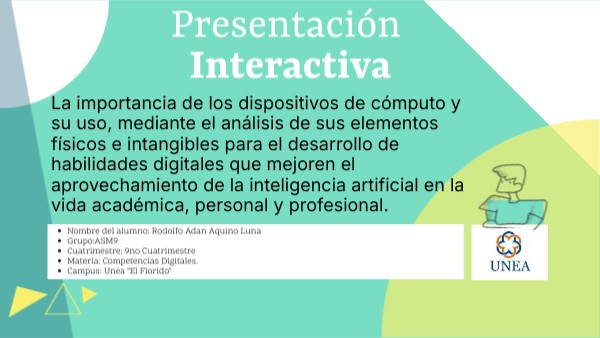 En la actualidad, la tecnologia juega un papel fundamental en la vida academica, personal y profesional, El uso a decuado de los dispositivos de computo y el conocimiento de sus elementos fisicos e intangibles permiten desarrollar habilidades esenciales para poder aprovechar herramientas avanzadas como la inteligencia artificial. A traves de este analisis, se responderan diversas preguntas sobre la importancia de las computadoras, el sotfware, el internet y las mejores practicas para una navegacion segura y responsable.