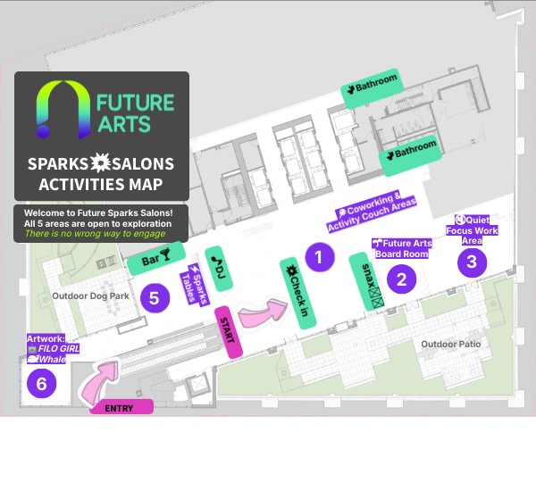 Welcome to Future Sparks Salons! All 5 areas are open to explorationThere is no wrong way to engage