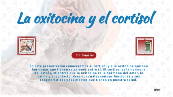 En esta presentación conoceremos al cortisol y a la oxitocina que son hormonas que tienen relaciones entre sí. El cortisol es la hormona del estrés, mientras que la oxitocina es la hormona del amor, la calma y el contacto. Veremos cuáles son sus funciones y sus características y los efectos que tienen en nuestra salud.