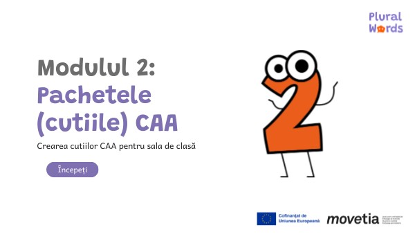 Pachetele CAA din proiectul Plural Words sunt seturi de resurse didactice create de specialiști cu scopul de a sprijini procesul de comunicare în cazul copiilor și adolescenților cu dizabilități și cu dificultăți de vorbire (de exemplu, dislexie, disgrafie, întârziere în dezvoltarea vorbirii, afazie). Conținuturile pachetelor vizează trei domenii școlare de bază (citire, scriere, numerație) și aspecte legate de viața de zi cu zi.