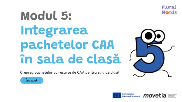 În acest modul, veți învăța strategii practice pentru a introduce pachetele de CAA (Comunicare Alternativă și Augmentativă) în sala dumneavoastră de clasă.