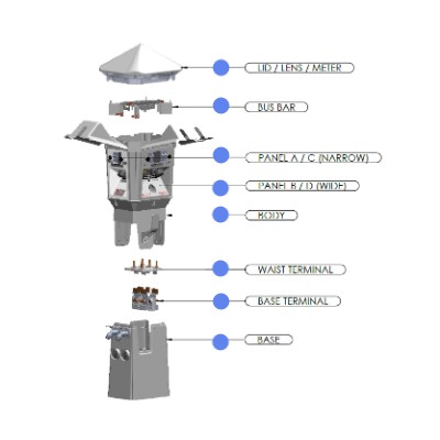 Replacement lids, clear lenses, and kWh meters for PowerPort®. View interactive schematics and component specifications.