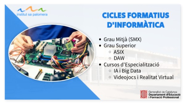 L'Institut Sa Palomera és centre formador de cicles d'informàtica des de l'any 2001. Ens avala una extensa experiència formant tècnics informàtics tenint en compte les necessitats del teixit empresarial del nostre entorn. Mantenim el vincle amb el nostre alumnat més enllà de la seva etapa formativa, mitjançant col·laboracions puntuals al centre, borsa de treball... creant dia a dia una gran xarxa que ens uneix.