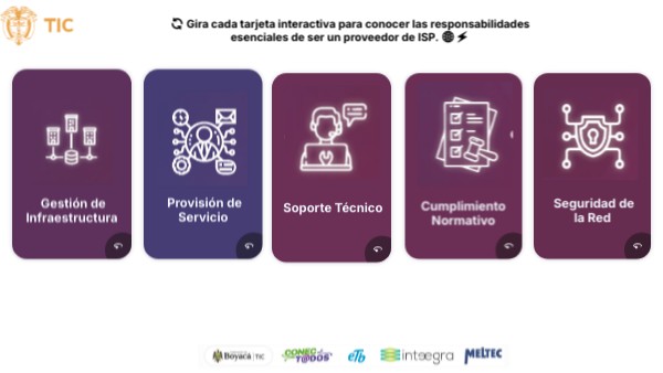 🔄 Gira cada tarjeta interactiva para conocer las responsabilidades esenciales de ser un proveedor de ISP. 🌐⚡
