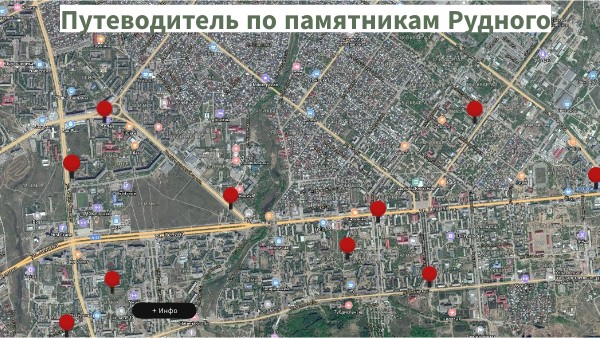 В путеводителе Вы найдете фотографии, местоположение, описание и историю создания памятников города Рудный