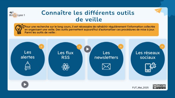 Pour une recherche sur le long cours, il est nécessaire de rafraîchir régulièrement l'information collectée en organisant une veille. Des outils permettent aujourd'hui d'automatiser ces procédures de mise à jour. Parmi les outils de veille :