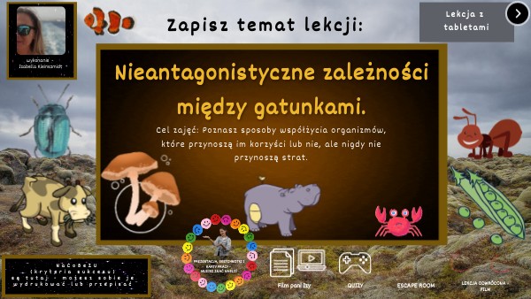 Cel zajęć: Poznasz sposoby współżycia organizmów, które przynoszą im korzyści lub nie, ale nigdy nie przynoszą strat.