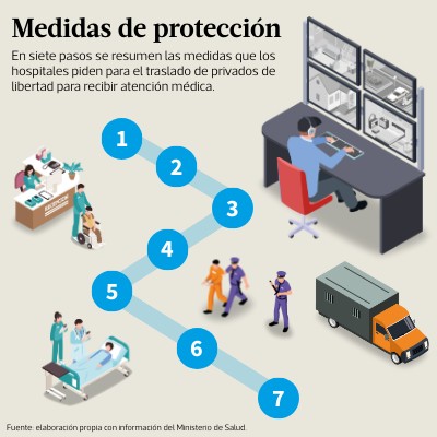 En siete pasos se resumen las medidas que los hospitales piden para el traslado de privados de libertad para recibir atención médica.