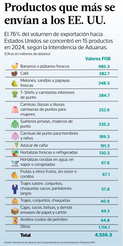 El 76% del volumen de exportación hacia Estados Unidos se concentró en 15 productos en 2024, según la Intendencia de Aduanas.