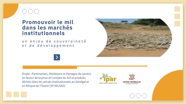 Projet : Partenariats, Plaidoyers et Partages de savoirs en faveur de la prise en compte du mil et produits dérivés dans les achats institutionnels au Sénégal et en Afrique de l’Ouest (3P-MILSAO)