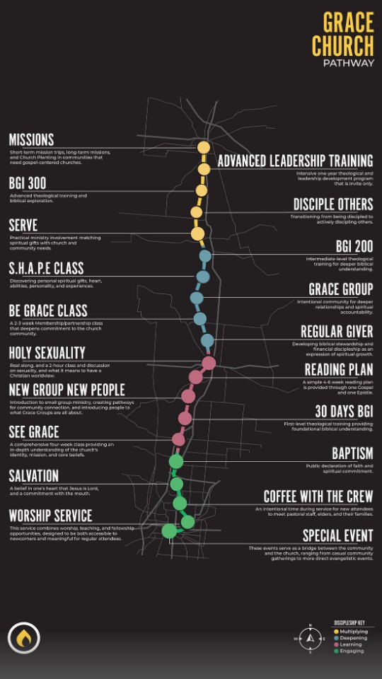 Transform your spiritual walk with our clear, intentional pathway designed for every stage of faith. Whether you're taking your first steps at Grace Church or have journeyed with us for years, these tangible next steps will help you feel genuinely welcomed and guide your continued pursuit of the Lord.