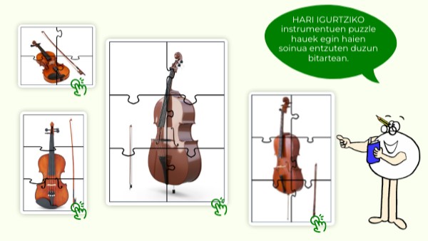 HARI IGURTZIKO instrumentuen puzzle hauek egin haien soinua entzuten duzun bitartean.