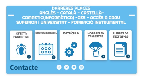DARRERES PLACES ANGLÈS - CATALÀ - CASTELLÀ- COMPETIC(INFORMÀTICA) -GES - ACCÉS A GRAU SUPERIOR I UNIVERSITAT - FORMACIÓ INSTRUMENTAL