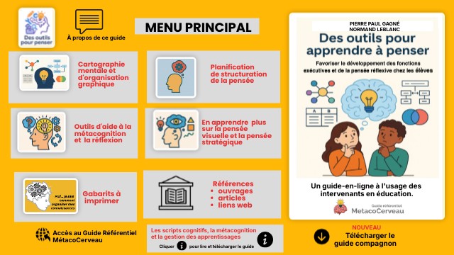 - Le modèle Réflecto, conçu par Pierre Paul Gagné, est un outil pédagogique qui aide les élèves à prendre conscience de leurs processus cognitifs et exécutifs lorsqu’ils réalisent une tâche. Ce modèle repose sur l’idée que les ressources cognitives comme l’attention, la mémoire de travail, ou la planification sont limitées, et qu’il est essentiel d’apprendre à les allouer efficacement pour optimiser l’apprentissage. Réflecto propose une scénarisation cognitive de la tâche : avant, pendant et après l’action. L’élève est invité à anticiper, obser-ver, analyser et ajuster ses stratégies, en se posant des questions clés à chaque étape.