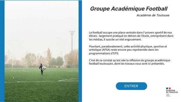 Le football occupe une place centrale dans l’univers sportif de nos élèves : largement pratiqué en dehors de l’école, omniprésent dans les médias, il suscite un réel engouement. Pourtant, paradoxalement, cette activité physique, sportive et artistique (APSA) reste encore peu représentée dans les programmations d’EPS. C’est de ce constat qu’est née la réflexion du groupe académique football toulousain, dont les travaux vous sont ici présentés.