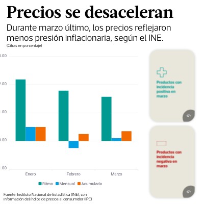 Durante marzo último, los precios reflejaron menos presión inflacionaria, según el INE.