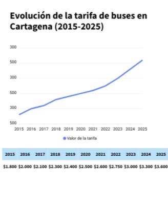 Evolución de la tarifa de buses en Cartagena (2015-2025)