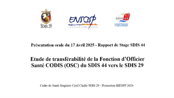 ETUDE DE TRANSFERABILITE DE LA FONCTION D'OSC DU SDIS 44 VERS LE SDIS 29
