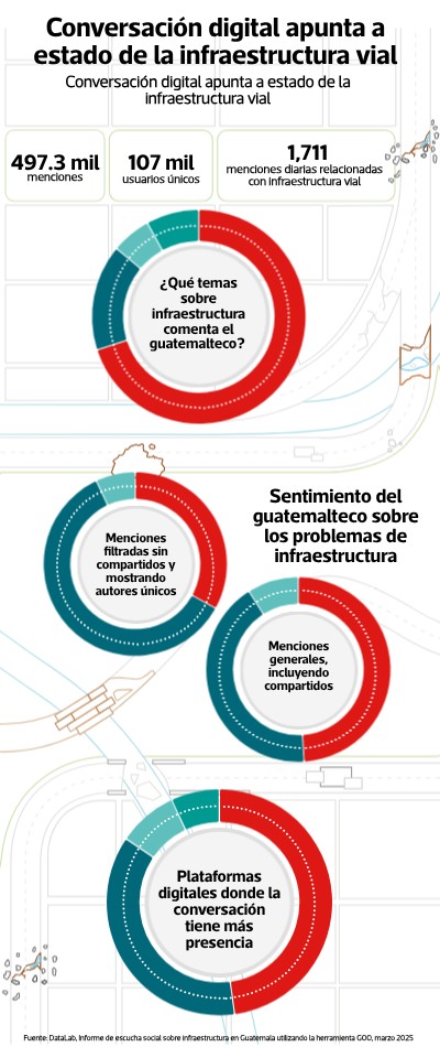 Fuente: DataLab, Informe de escucha social sobre infraestructura en Guatemala utilizando la herramienta GOO, marzo 2025