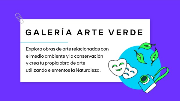 Después de explorar todas las obras de la galería y conocer a artistas que crean para cuidar la Tierra, ahora llega el momento de que tú seas quien se convierta en artista del planeta. La naturaleza, los objetos que ya no usamos, los colores, los sonidos… ¡todo puede inspirarte!