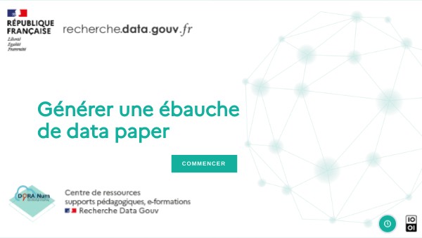 La génération d'une ébauche de data paper se fait en quelques clics.